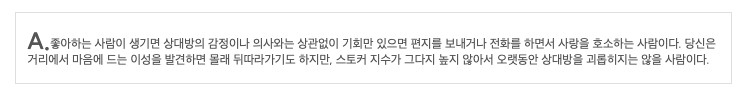 선택지가 다수 나오는데 이중에 애정에 관한 나의 심리로 "이상형을 만난다면?"을 선택했습니다.