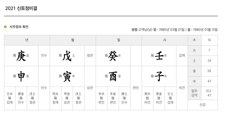 그렇게 본인의 생년월일 및 기타 정보를 토대로 사주 정보와 운세를 확인할 수 있습니다.