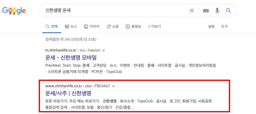 신한생명은 사실 보험 회사입니다. 하지만 워낙 신빙성 있는 운세 서비스를 무료로 제공하기 때문에 많은 분들에게 인기가 있는 사이트입니다. 여러분이 자주 사용하는 검색 포털 사이트에서 [신한생명 운세] 검색하면 쉽게 찾아볼 수 있습니다.
