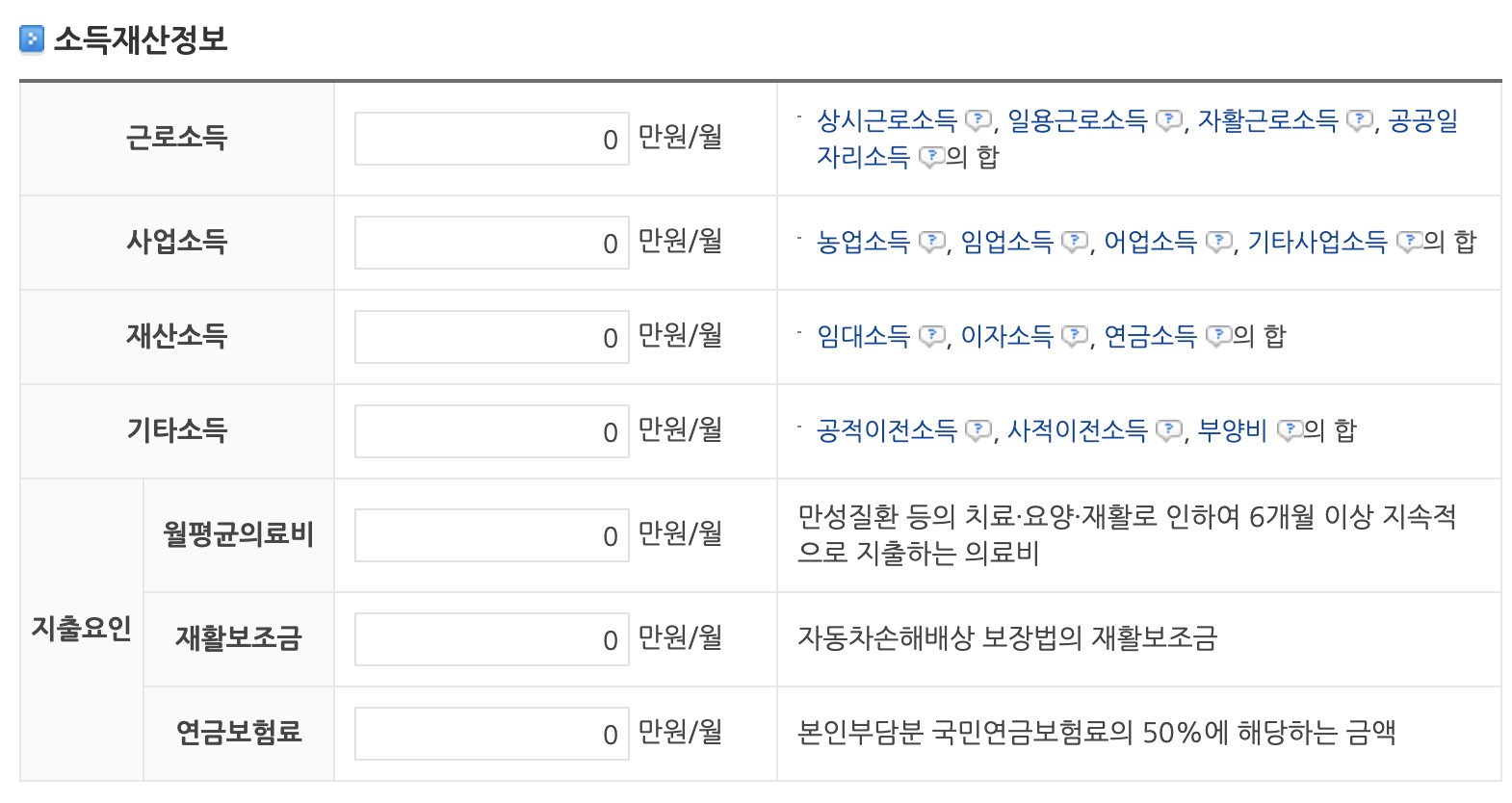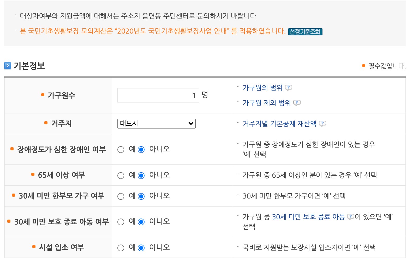 기초생활수급자 조건 모의 확인