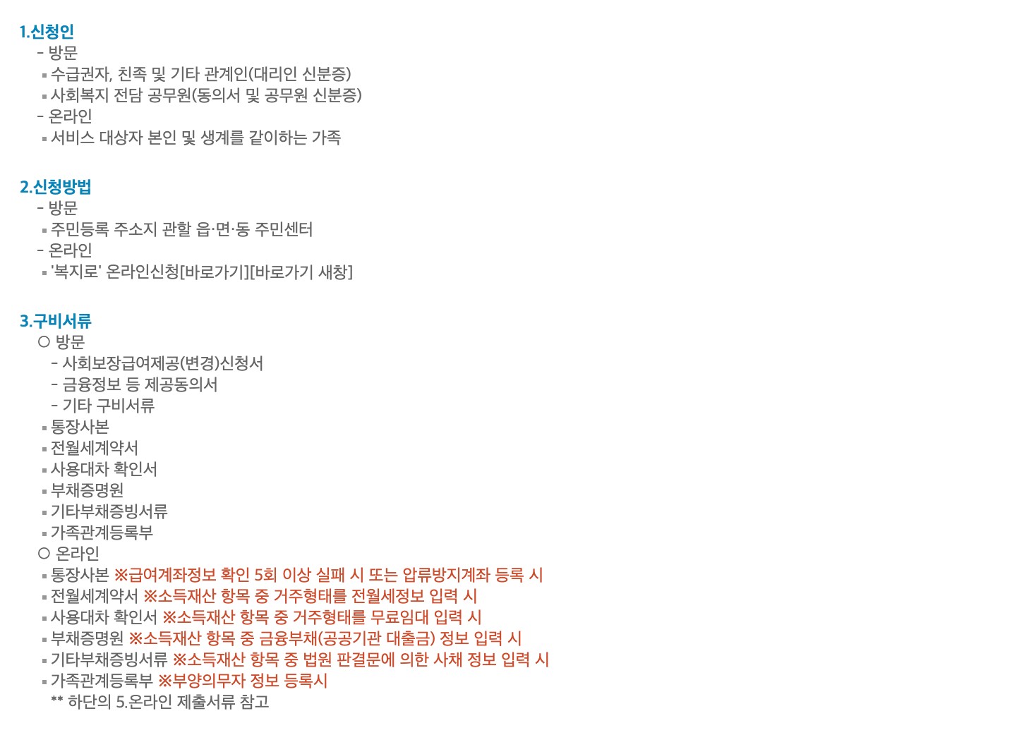 기초생활수급자 신청절차