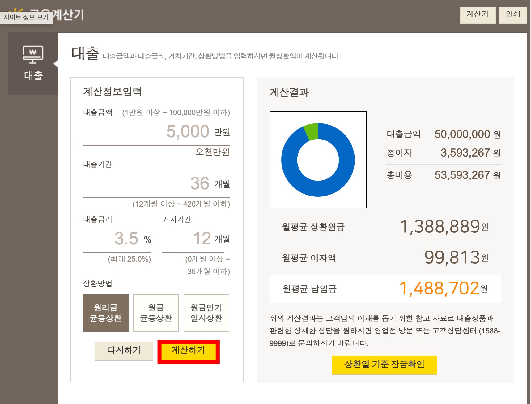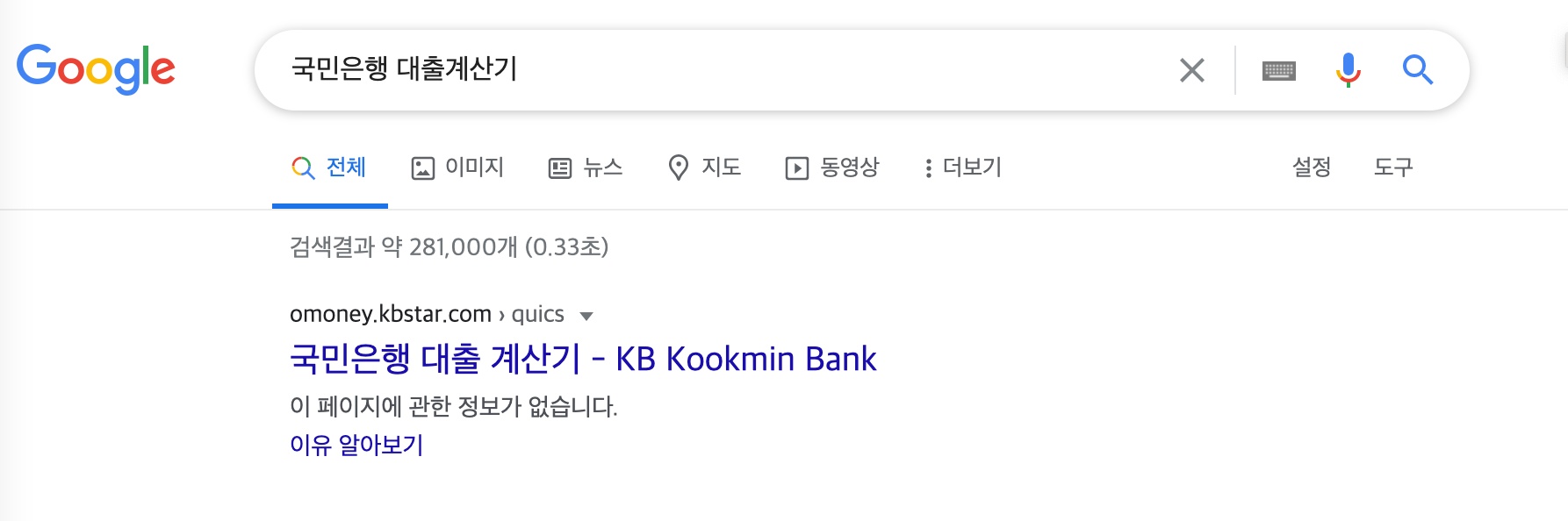 이를 활용하기 위해서 검색 포털 사이트에 [국민은행 대출계산기]를 검색합니다.