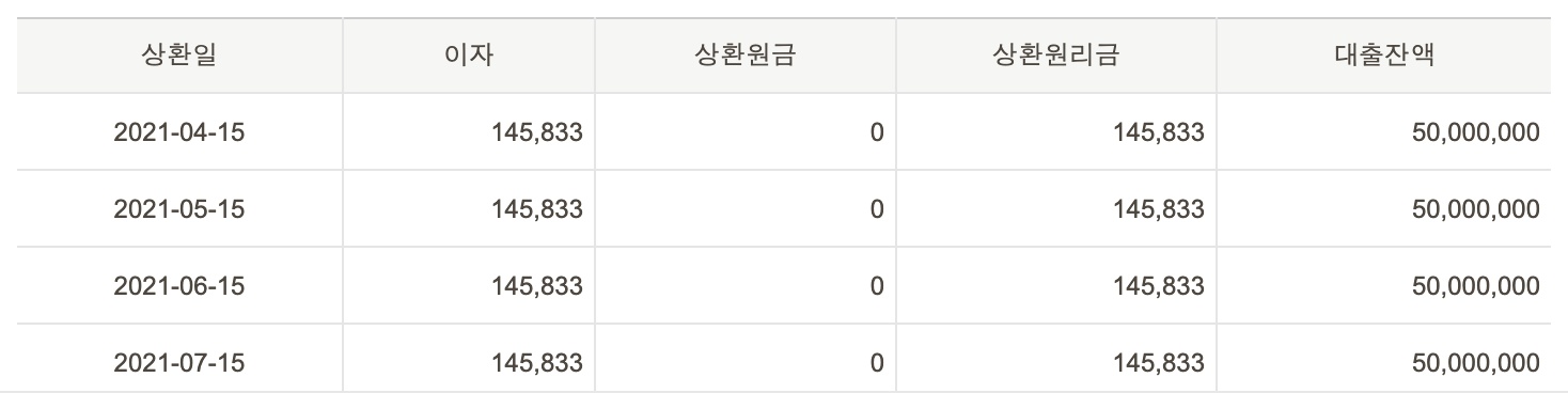 또한 상환일 기준 잔금 확인을 누르면 보다 더 자세한 내역을 확인할 수 있습니다.