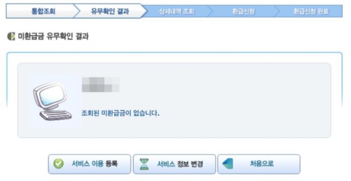 - '행정정보 공동이용 소개' 메뉴에서 '미환급금 찾기'를 선택한 다음 아래쪽 이용절차 부분의 내용 클릭.
